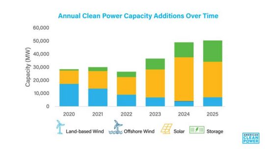 - Strongest Clean Power Year on Record: Total clean power capacity installed in 2025 reached 50,344 MW — a 3% increase over 2024 and the first-time annual deployment has surpassed 50 GW.