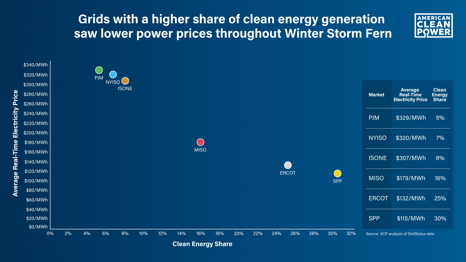 Overall, clean energy saved consumers $2+Billion during Winter Storm Fern. And consumers living in regions that make use of all available energy sources – especially those with significant wind, solar, and energy storage – also saw lower costs.